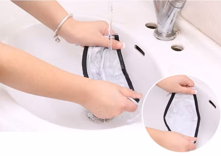 Munskyddet har justerbara öglor/slingor i båda öronen för att justera storlek för bästa passform. Öglorna är i resår.