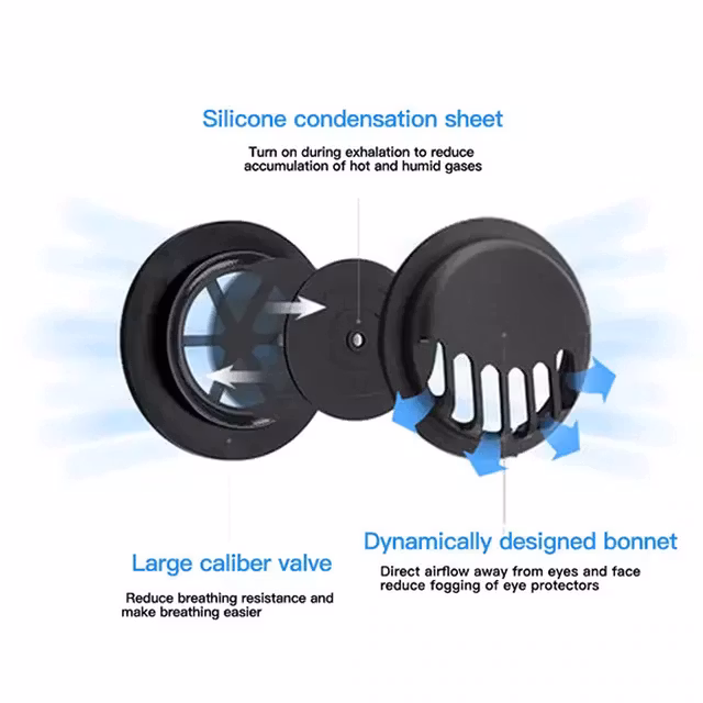 Ventil hjälper till att lättare andas. Ventilen hjälper även till att förhindra bort imma på glasögon