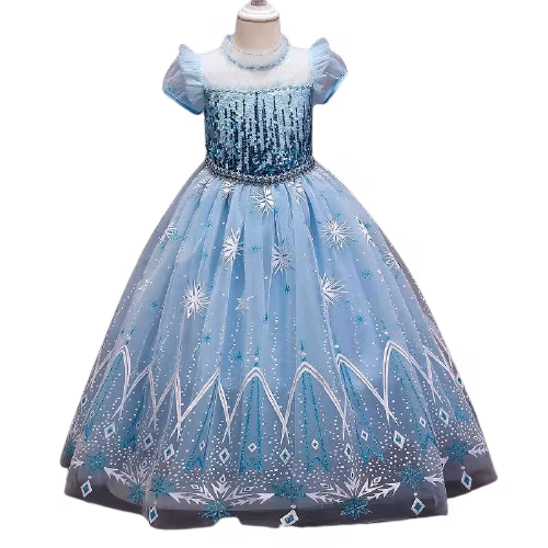 Mycket vacker blå prinsessklänning med fina detaljer och glittrande paljetter.